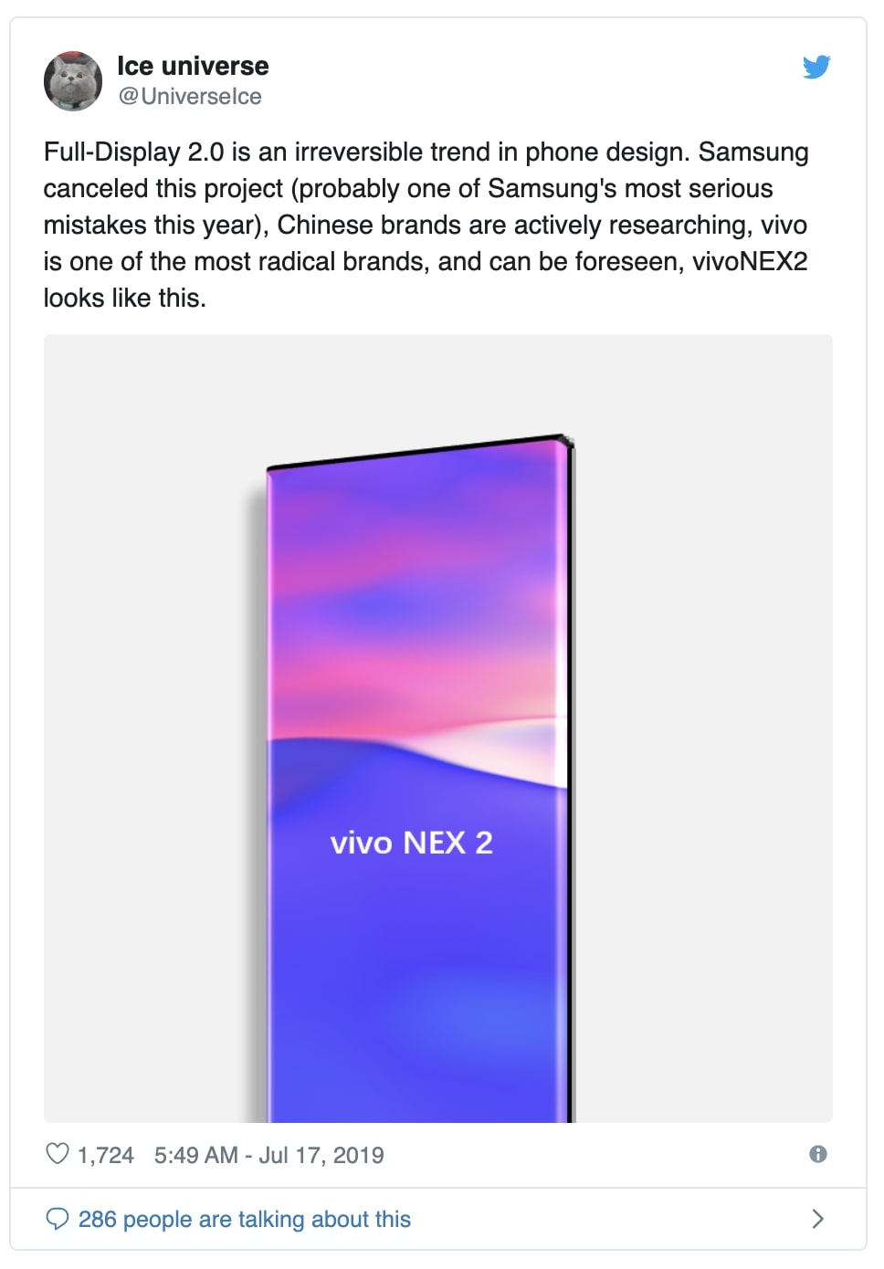 Pois bem, a desistência da Samsung parece ser agora a grande aposta de várias fabricantes Chinesas, nomeadamente a Huawei com o seu próximo Mate 30 Pro, e Vivo com o seu NEX 2.